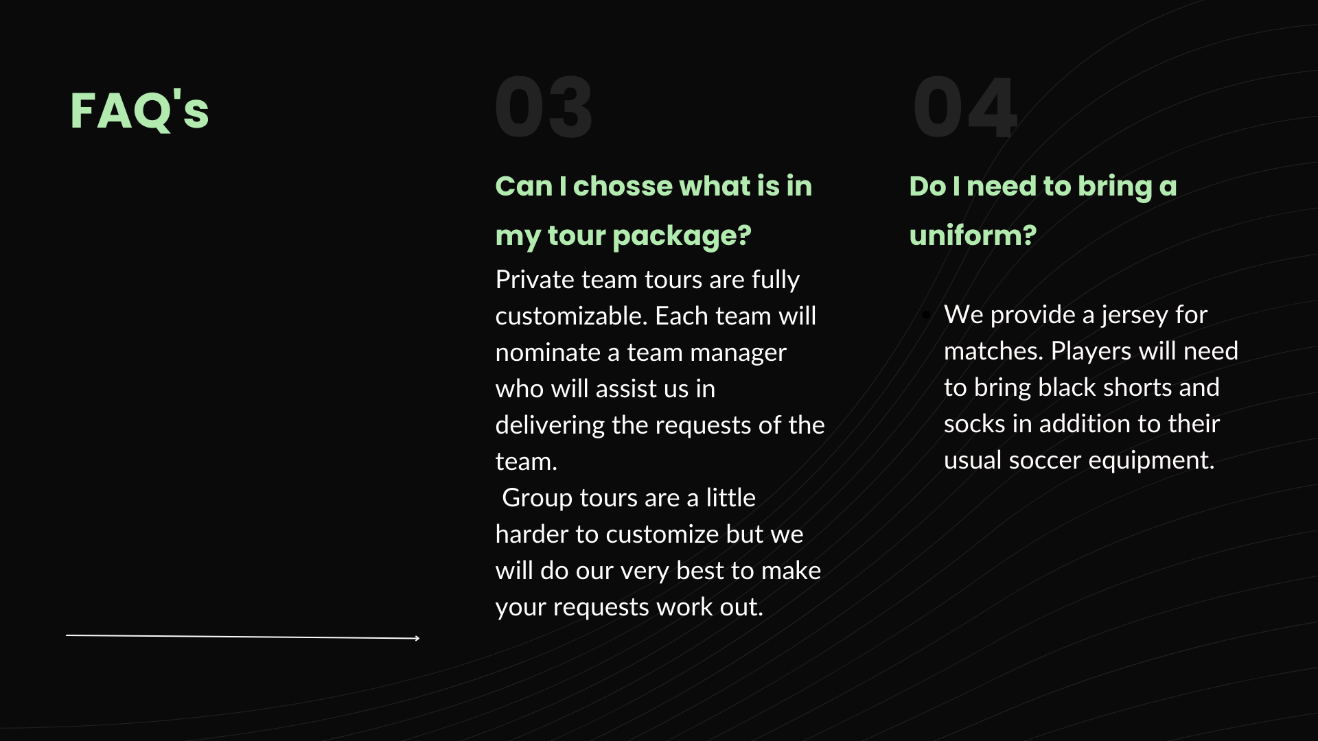 Here's how it works: We curate unforgettable journeys that blend top-tier training, competitive matches, and exploration of iconic soccer destinations. Whether you're a team looking for a tailored experience or an individual ready to join a group, our tours offer a winning combination of soccer excellence and travel adventure. Get in the game with Pitch Trips!